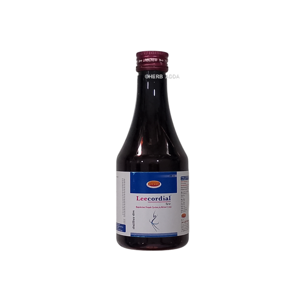Lee‑Cordial Syrup is a natural, non-hormonal Ayurvedic tonic that supports women’s reproductive health by regulating periods, easing menstrual discomfort, and reducing stress and related symptoms.
