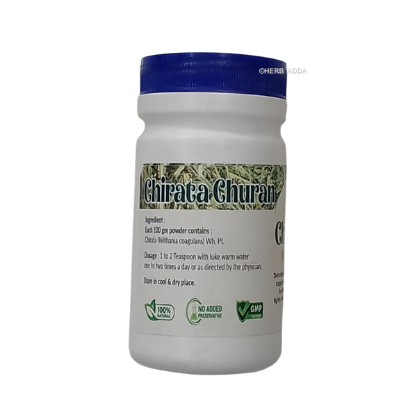 Take 1–2 teaspoons of chirata churn, mix it with warm water or honey to make a paste. Take it once or twice daily, preferably after meals or as directed by an Ayurvedic practitioner.