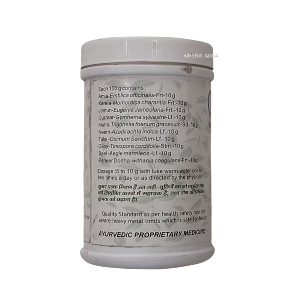 NMP Sugar Ghatak is a natural Ayurvedic powder for diabetes management, designed to support healthy blood sugar levels. Made from a powerful blend of herbs like Amla, Karela, Jamun, Gurmar, Methi, Neem, Tulsi, Giloy, Bael Leaf, and Paneer Doda, it offers a holistic approach to managing diabetes and overall well-being. Rich in antioxidants and free from artificial additives, it also helps boost metabolism, improve digestion, and enhance vitality—bringing the pure goodness of Ayurveda to your daily routine.