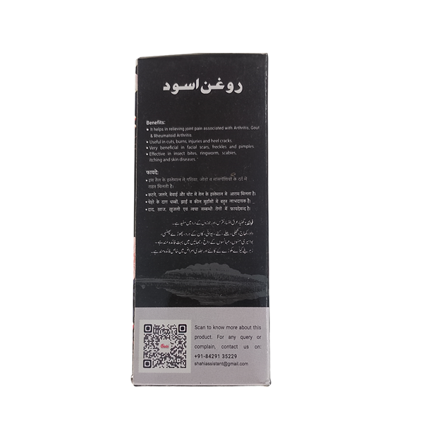 Shahi Roghan Aswad Oil blends multiple natural Unani ingredients to deliver soothing and restorative benefits. It actively supports skin health by relieving dryness and irritation while improving texture with regular use. Additionally, it nourishes the skin and helps maintain everyday hygiene and comfort.