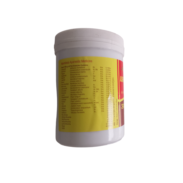 Vyas Ashwagandha Pak is a nourishing and rejuvenating herbal paste made for strengthening your body. It particularly supports those with Vata-Pitta imbalance, giving warmth and stamina. The formulation helps improve digestion and replenishes body tissues over time. It also supports male reproductive health by improving kidney and testicular vitality. With regular use, it enhances strength, energy, and endurance. Thus, it gives you a natural tonic to feel more rooted and resilient.